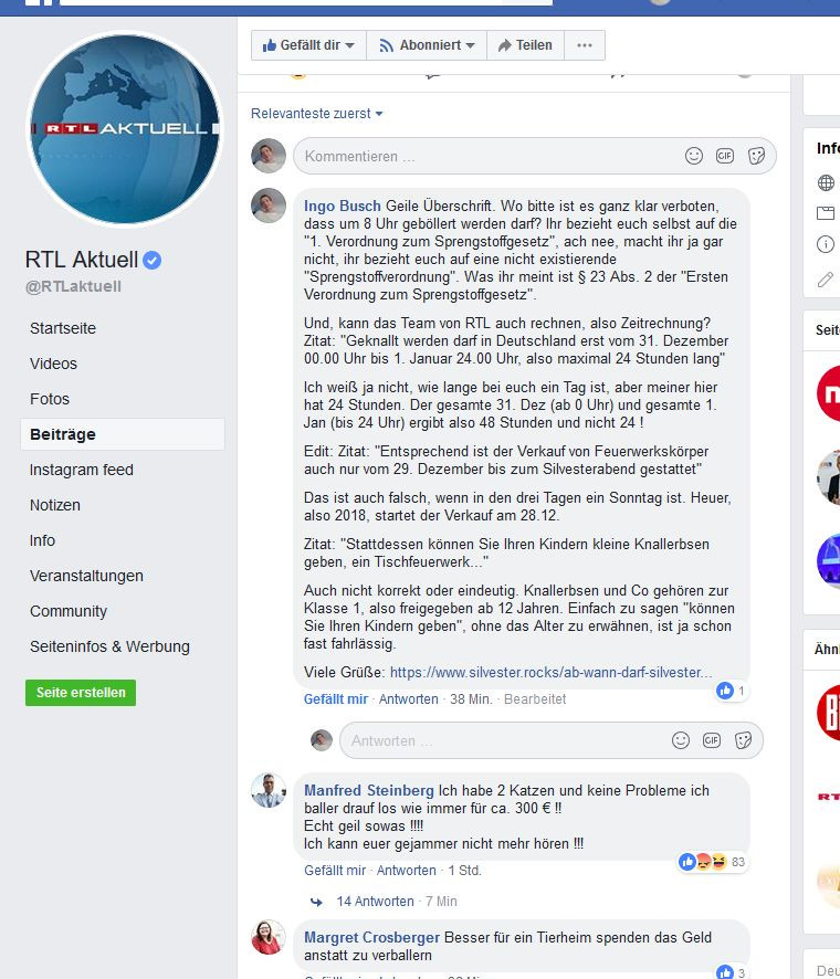 Ja, es geht um den Beitrag von RTL zu Silvester, der hinten und vornen nur falsch ist. Mein Kommentar war in dem Fall die Aufzeichnung der ganzen Fehler, die in derem Artikel sind.