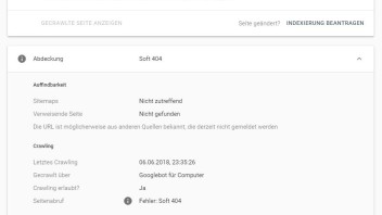 Sehe ich die mir an, z.B. aktuell bei der Domain, dann sind das 37. Wobei weitere 38 "gültig" sind. Also fast 50% sind "ausgeschlossen". Als Grund für das "ausgeschlossen" steht in der Liste erst mal "Soft 404".