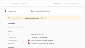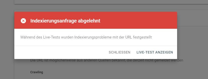 Ok, ein Indexierungsproblem..... Also klicke ich da auf "Live-Test anzeigen". Der gibt mir dann das als Ergebnis: