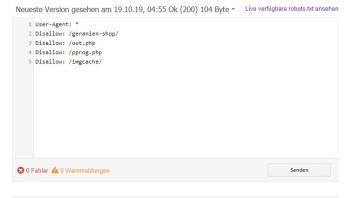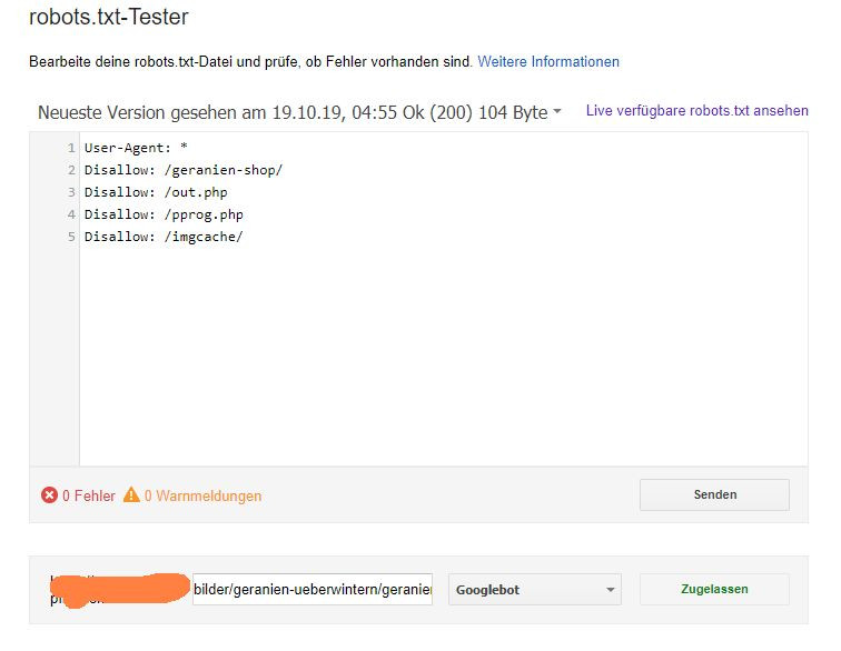 Also wieder was neues. Einen robots.txt-Tester gibt es in der neuen GSC nicht, nur in der alten. Die sagt mir zu der URL: