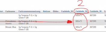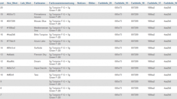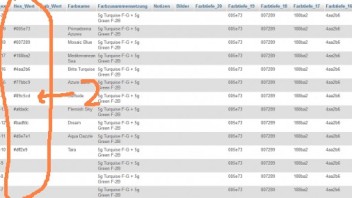 Jetzt habe ich eine Anzeige, in der ich alle Farbnummern und wichtigen Daten, sowie die dazugehörigen Farbtiefen anzeigen lassen will.