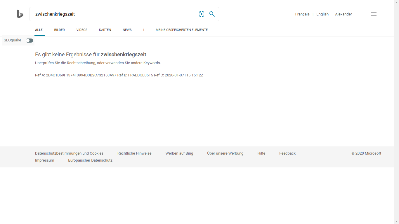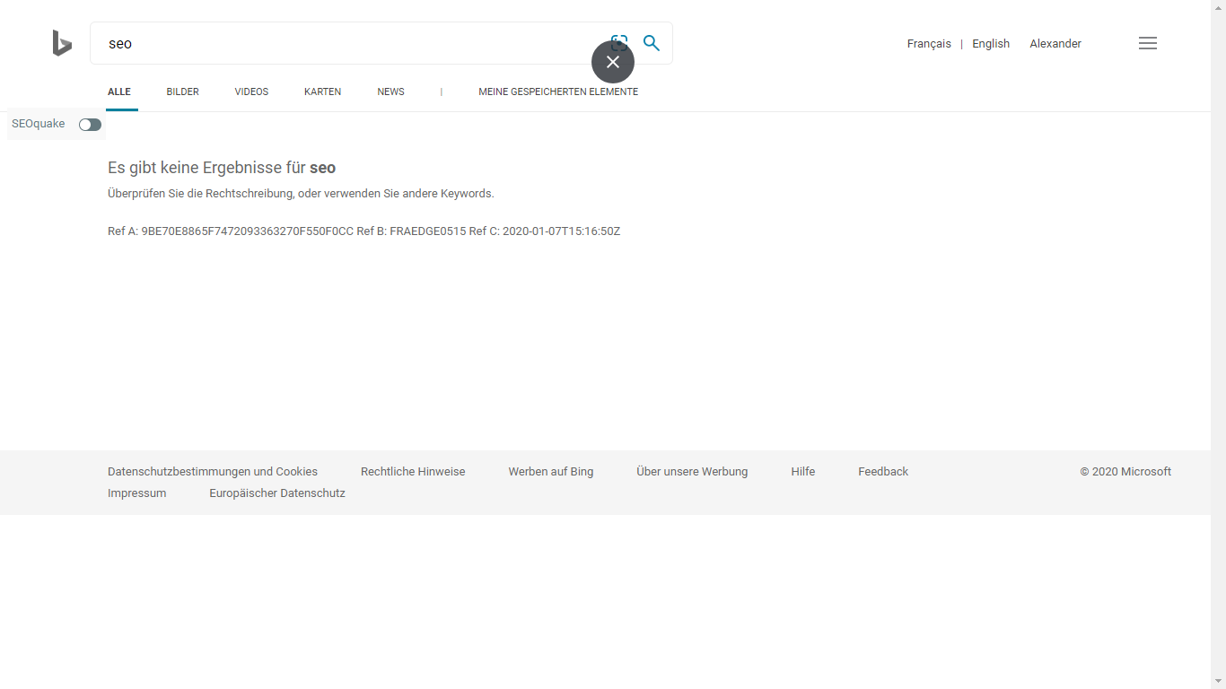 • Bei mir kommt gar nichts, noch nicht mal die Zeichenfolge. ....... Das aber schon seit Jahren immer wieder..... Daher eben auch für mich: Bing ist unbrauchbar