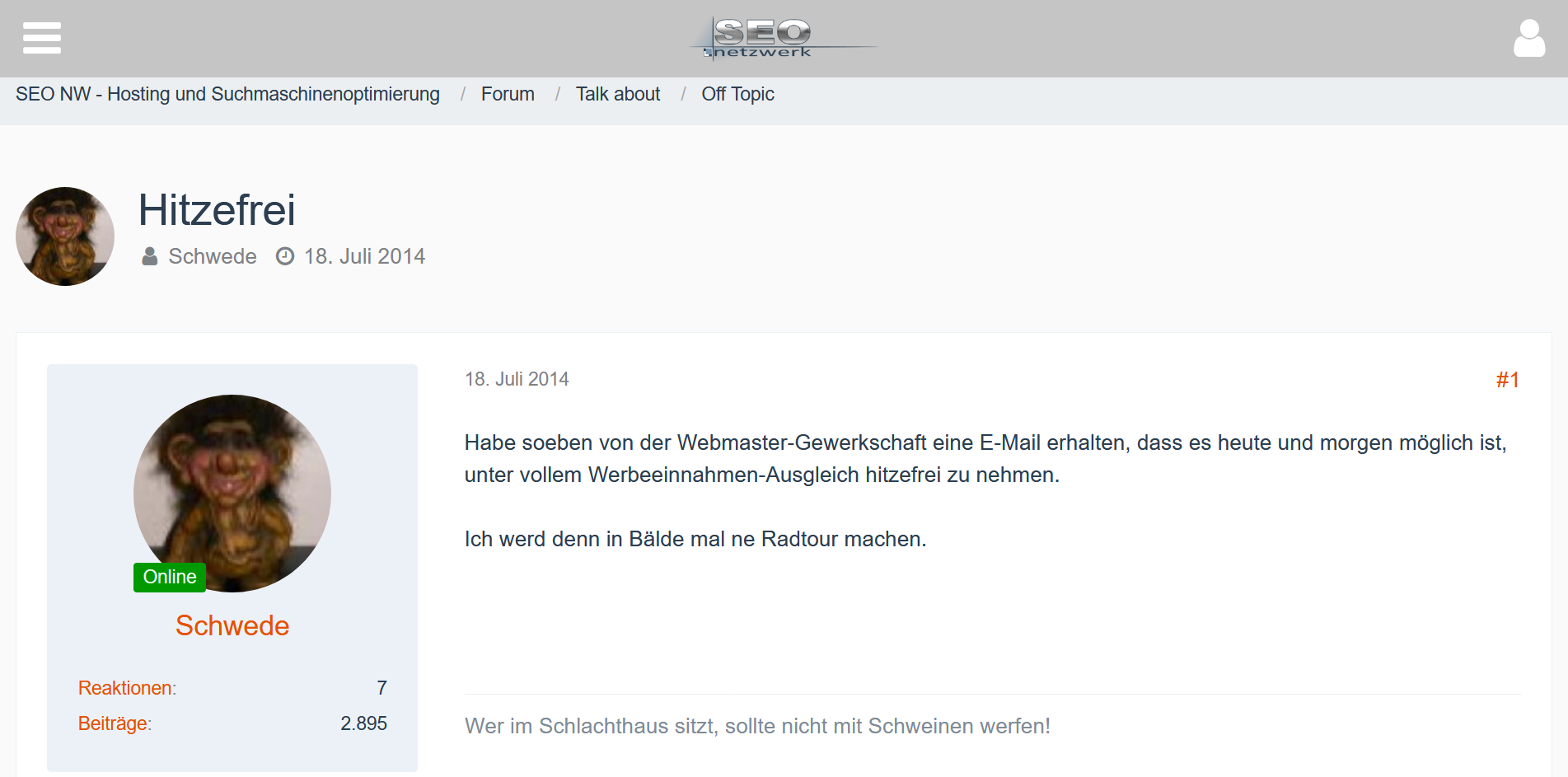 Alle Foren laufen natürlich mit dem Hosting auch auf den SEO NW Servern. Mein persönlicher Favorit ist allerdings WBB - so wie hier ![]()