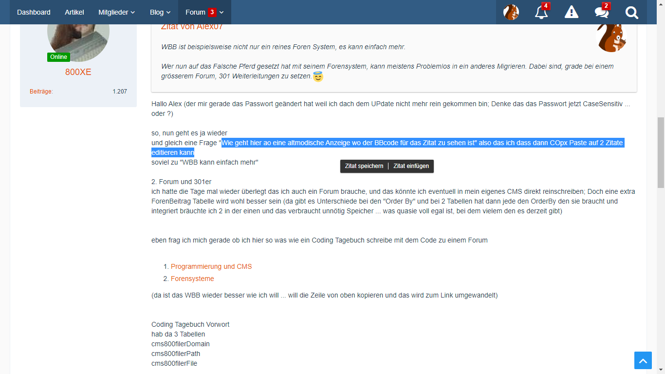 Also Zitieren ist super Easy geworden. Einfach zB das hier markieren und Zitat speichern oder Zitat einfügen auswählen.