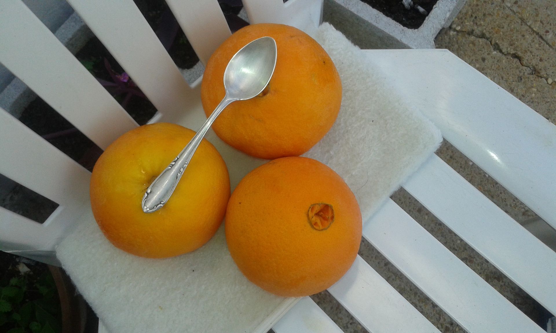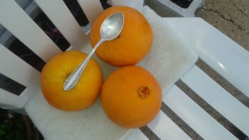 Habe ich auch aktuell, von meinem Orangenbaum hinterm Haus. Jede einzelne wiegt so 500 Gramm.