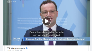 ok, Mist. Ist ein Post einer Freundin von mir (nicht über den Text wundern, sie ist kroatin), wohl nicht öffentlich. Ist ein Video, keine 55 Sekunden, von ZDF, Morgenmagazin (6. Mai, 8 Uhr 16) mit Herrn Spahn. Ich suche mal, vielleicht finde ich das noch wo anders. Notfalls Mediathek, wenn es da denn sein sollte.