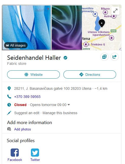 Wie gesagt, ich habe hier 7 Einträge zu meinem "Ort". Alle 7 sind von der Webseite her richtig, angezeigt wird aber eine falsche. Alle sieben haben unterschiedliche Bilder etc. Eigentlich war das mal nur ein Eintrag bei denen, der war vollständig und gepflegt. Dann kamen automatisch immer wieder neue dazu. Mal andere Webseite, also ganz andere, nicht nur .com oder .de, mal anderer Titel, mal andere Telefonnummer.