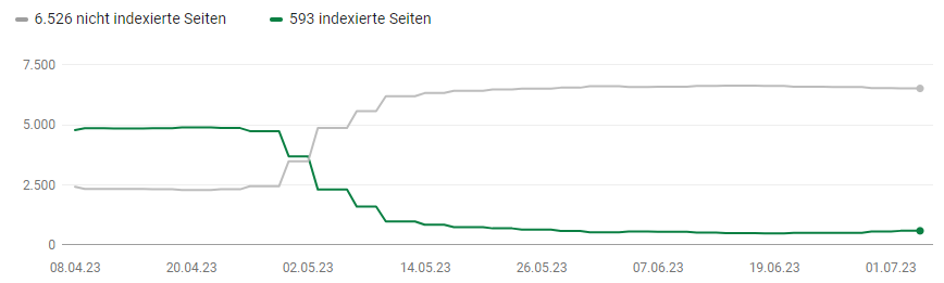 Ich vermute mal.... das das was mit Black Hat Filtern zu tun hat. Also deswegen auch das sinken der indizierten Seiten. Es erholt sich aber, das dauert leider etwas.