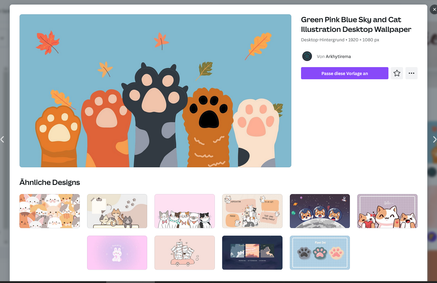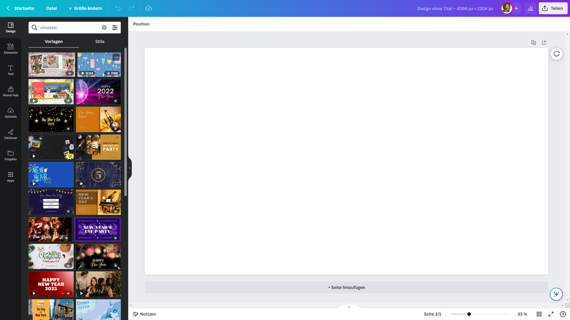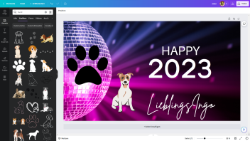 Danach kannst du links schon nach Vorlagen filtern und das einfach "reinziehen". Zack ist das Design schon fast fertig, nur mit deiner Auflösung. Danach kannst du da auch Hunde und Katzen reinmachen.