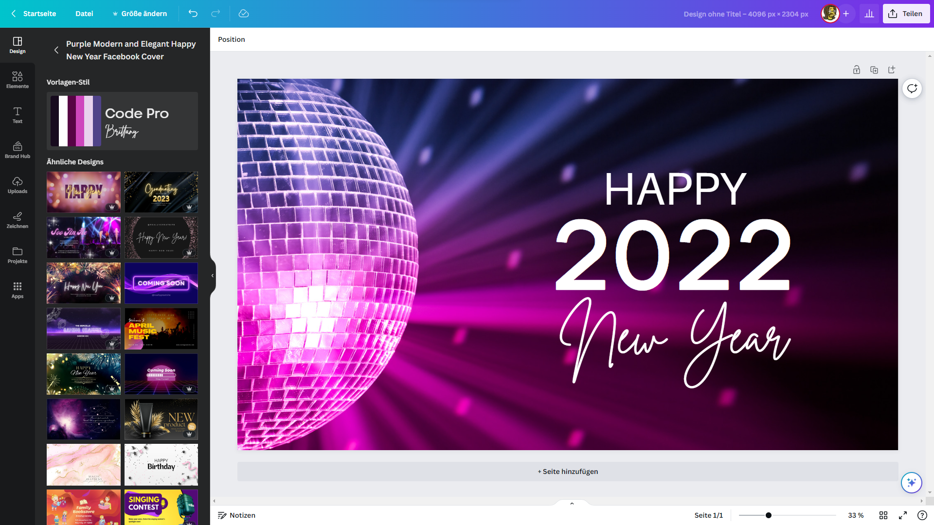 Jetzt habe ich mal testweise Silvester eingegeben. Dann wähle ich mir mal ne Vorlage und Zack: