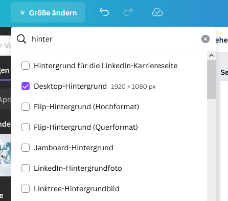 Ah, wenn man den Menüpunkt "Größe ändern" nimmt, dann gibt es den Punkt "Desktop-Hintergrund" dort noch. Genau das Format gab es bisher auf der Startseite, damit man sich von den ganzen Vorlagen nur eben die in der Größe anzeigen lassen konnte.
