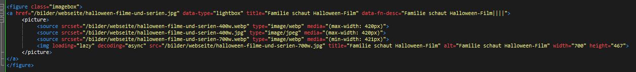 Warum ich das nun hier schreibe? Weil mir nun die Gedanken durch den Kopf gehen. Ich habe im src das jpg und im srcset das webp. Eigentlich als Fallback für Browser, die srcset und webp nicht können. Dann steht im "src" immernoch ein Bild, das sie verstehen.