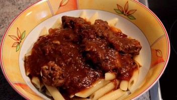 Hm... heisst das auf Deutsch nicht: "Nudeln mit Kätschapp"?