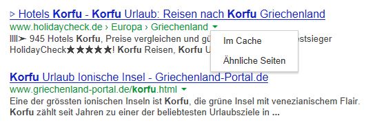 bei Bing kann man sich ja den Cache anzeigen lassen, wenn man auf den kleinen Pfeil neben der URL klickt - bei Google seh ich das gerade auch, plus Anzeige ähnliche Seiten
