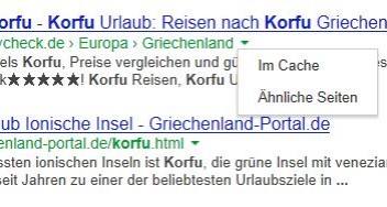 bei Bing kann man sich ja den Cache anzeigen lassen, wenn man auf den kleinen Pfeil neben der URL klickt - bei Google seh ich das gerade auch, plus Anzeige ähnliche Seiten