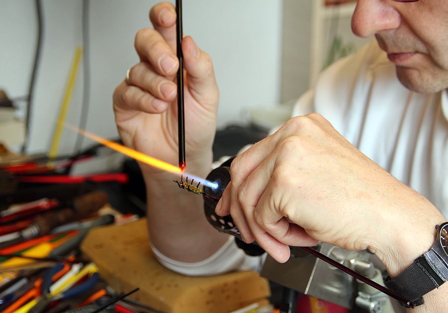 Sonneberg meldet aktuell 20° bei sonnigem Wetter. Deshlb war ich heute auch nicht vor dem Rechner, sondern hab einen Ausflug gemacht. Zu einem von zwei Menschen auf der ganzen Welt, die Insekten aus Glas herstellen. Foto - Werkstatt in Lauscha