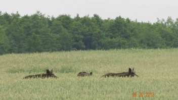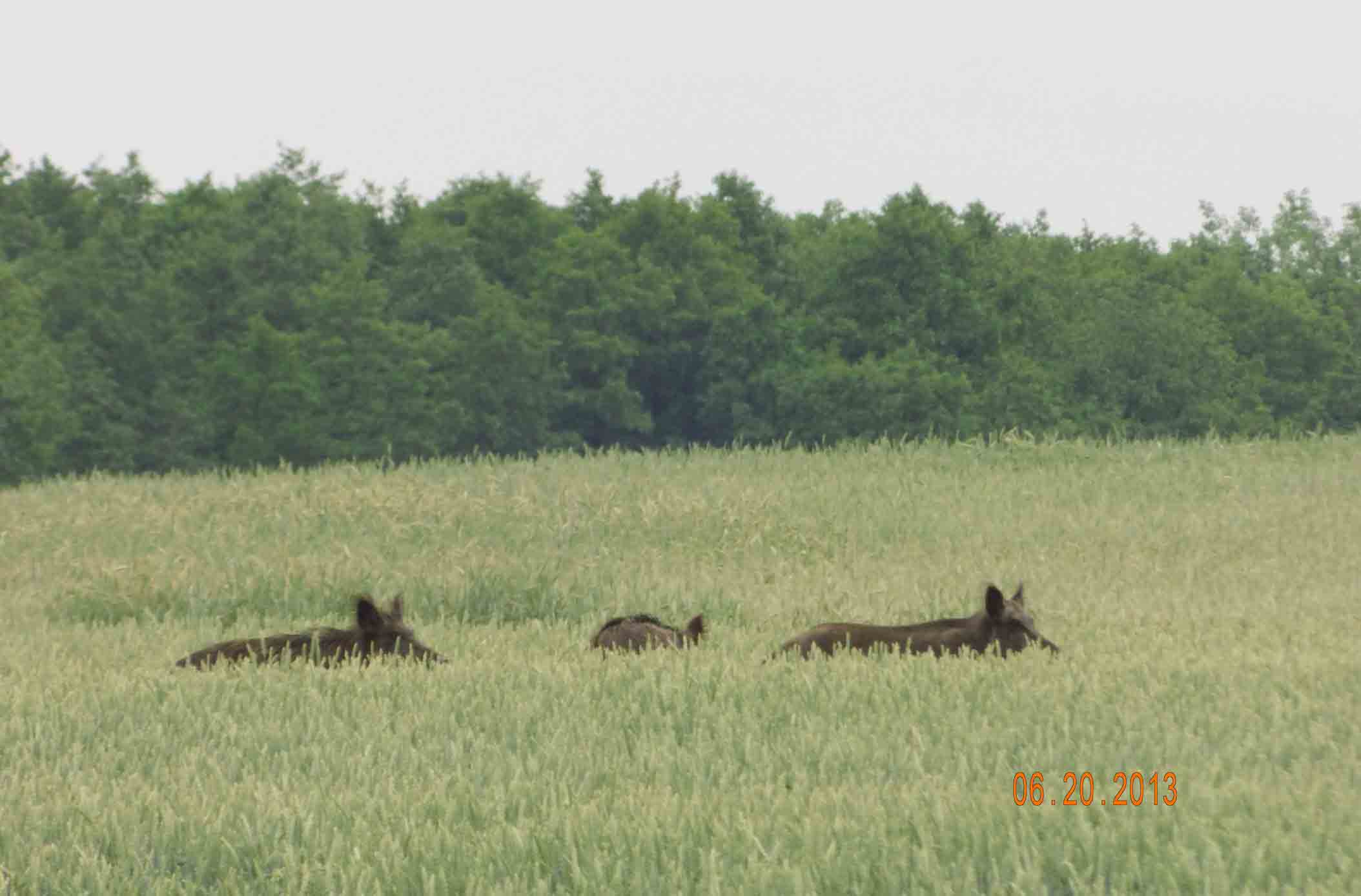 • Die laben sich am Weizen direkt neben unserem Zaun und mein Köter spielt verrückt - stört die nicht die Bohne. Irgendwie läuft mir das Wasser im Mund zusammen :grummel:.
