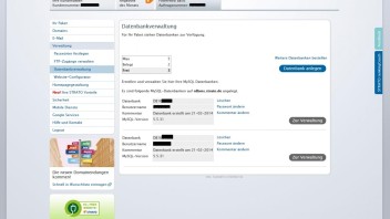 4. Dort müsste dann stehen, wie viel Datenbanken Du anlegen darfst und wie viele schon angelegt wurden. Wenn angelegte vorhanden sind, dann werden die jeweils darunter in der Liste angezeigt mit Datenbankname, Benutzername und Mysql-Version.
