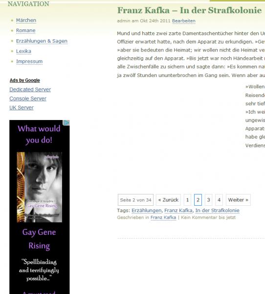 Kafkas "In der Strafkolonie" und dabei ein Ad für eine Lesben und Schwulen-Literatur-Site: *** Link veraltet ***