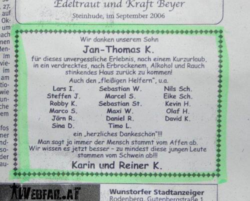 Wobei man sich da auch wieder die Frage stellen muss, wie alt die denn da waren... Abschlussklasse 2007 der Realschule. Die Anzeige ist von 2006 :pfeif: